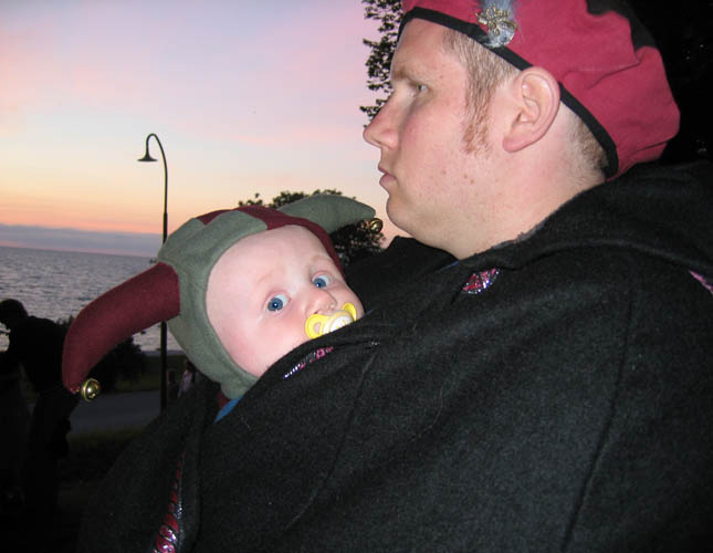 | Hörselkåpor är bra att ha när livebandet har 4 säckpipeblåsare och 5 trummisar. | |