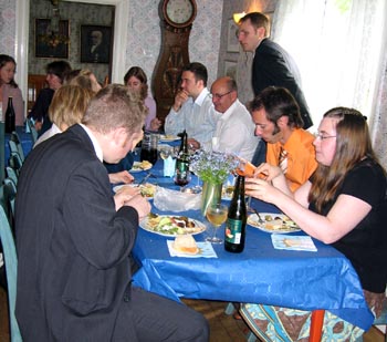 Maria spelade piano och sjöng "Det är du". Alla gästerna sjöng gemensamt till "Det gåtfulla folket", "Turistens klagan" och Nikodemus favoritsång "En kulen natt". Dikter lästes av Mormor, farmor, mamma och pappa.